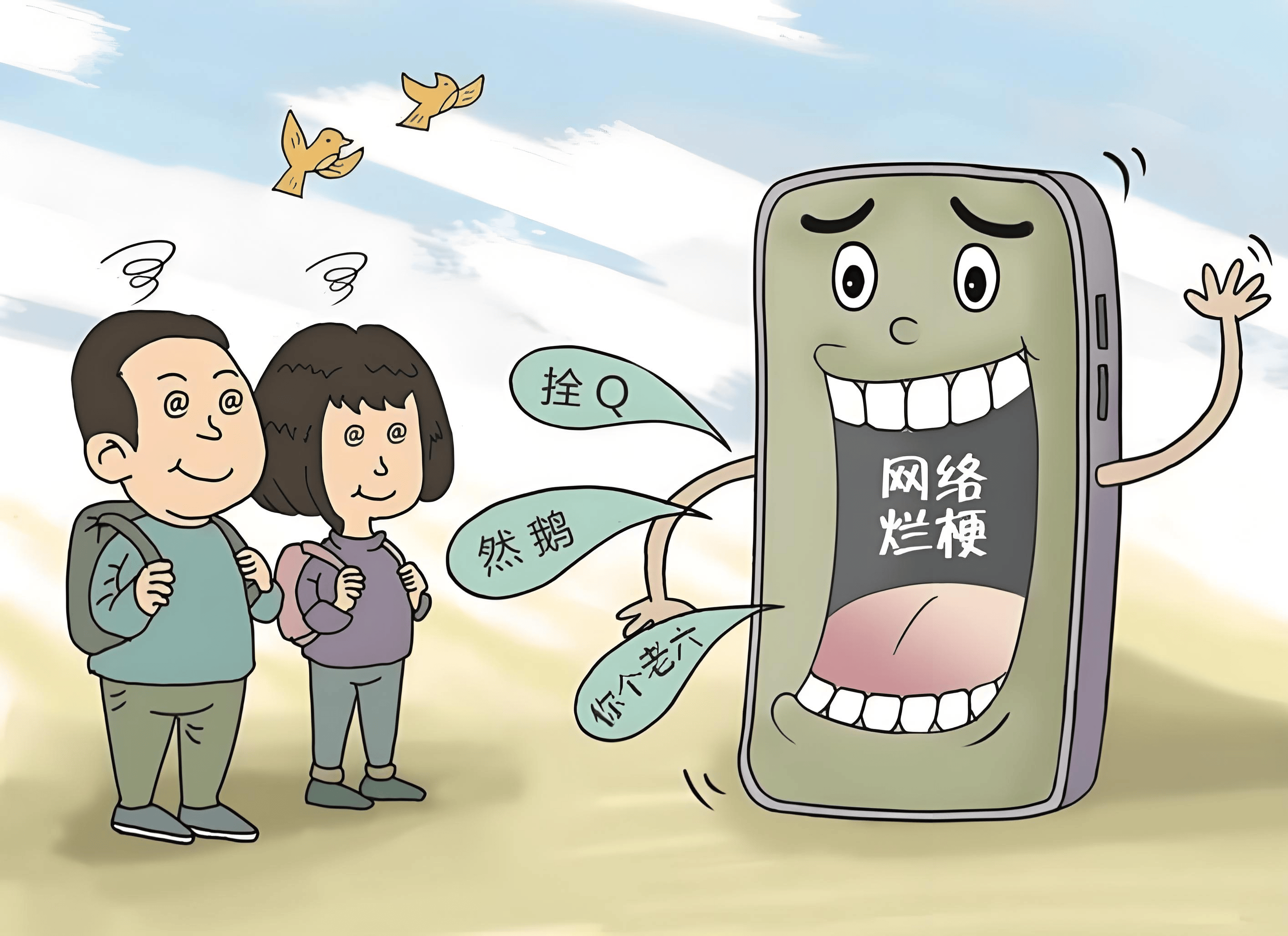 网络烂梗本身并无原罪,其背后折射的是数字时代的代际语言博弈。家长与其忧心忡忡地禁止,不如将其转化为教育契机——和孩子聊聊“栓Q”的起源,分析“躺平”背后的社会情绪,引导他们理解语言背后的文化内涵。毕竟,让孩子学会辨别语言的美与丑、雅与俗,比单纯杜绝几个词汇更重要。当家庭、学校、社会共同筑起健康的语言生态,孩子自会在潮流与规范间找到平衡,既不被网络烂梗裹挟,也能享受语言创新的乐趣。